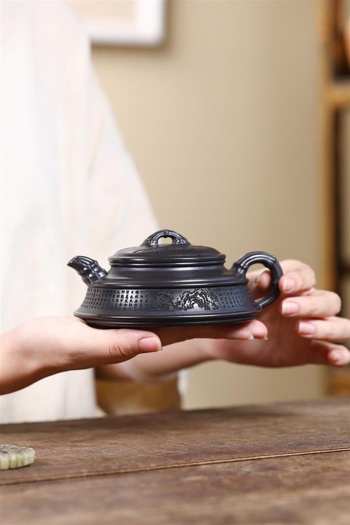 450cc原礦紫泥滿刻大德鐘茶壺POT8290