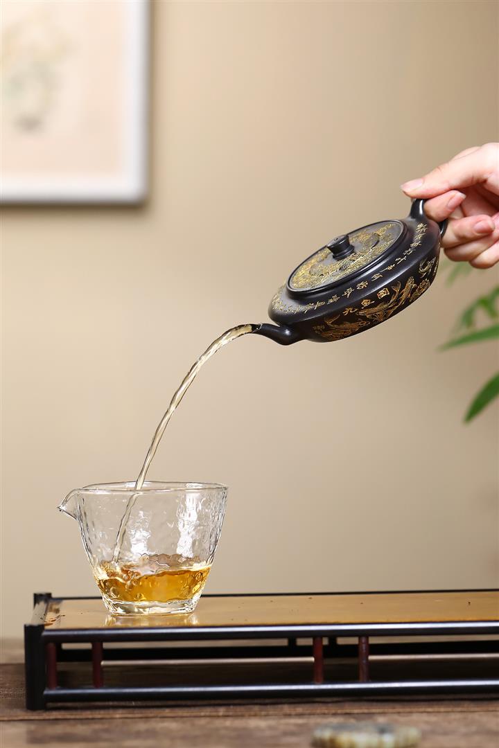 【泥料特點】砂土氣重,似淳實農民,日久使用,漸露鋒芒,養成變化,溫潤莊重。紫砂是壹種雙重氣孔結構的多孔性材質,氣孔微細,密度高。用紫砂壺沏茶,不失原味,且香不渙散,得茶之真香真味。紫砂使用越久,壺身色澤越發光亮照人,氣韻溫雅。紫砂壺長久使用器身會因撫摸擦拭,變得越發溫潤光澤。