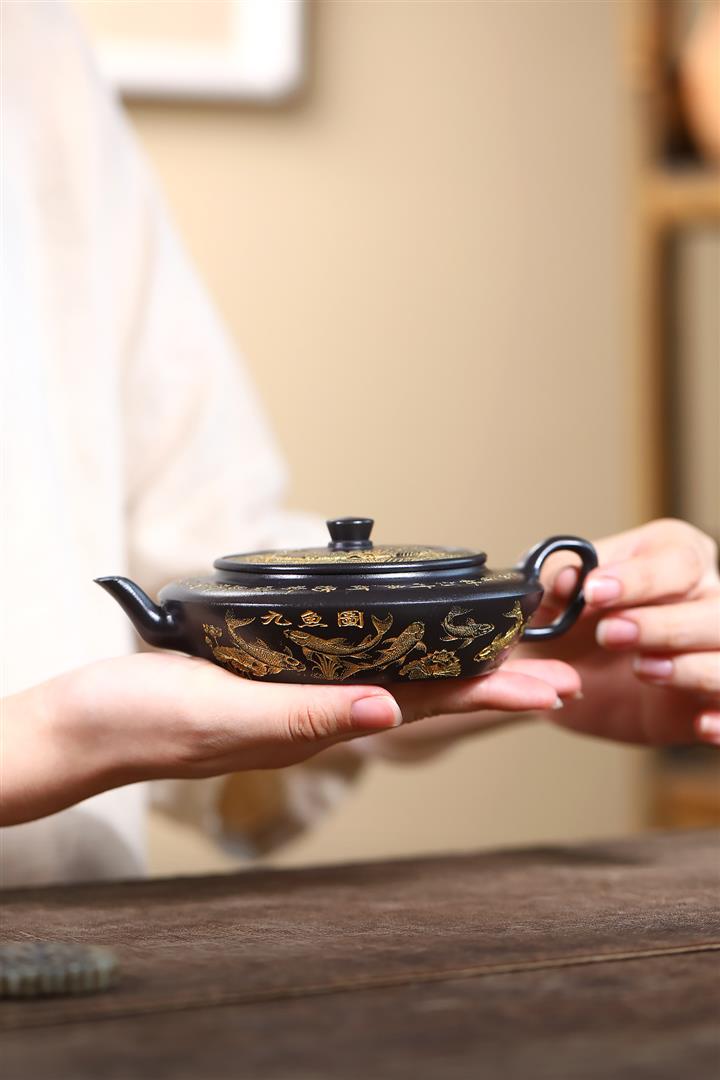 【作品介紹】此款壺形線條流暢,壺把,壺嘴,壺身壹氣呵成栩栩如生,是收藏把玩的好壺,泥料色澤古樸典雅,日久使用,漸露鋒芒,養成變化快,溫潤莊重,用其泡茶,使用的年代久,壺身就溫潤,泡出來的茶湯也就醇郁芳馨。