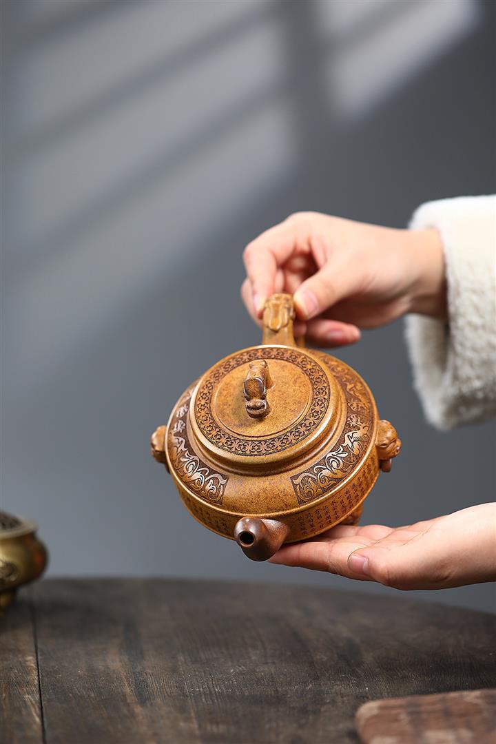 240cc龍骨金砂麒麟獻瑞伏虎漢瓦茶壺POT8276