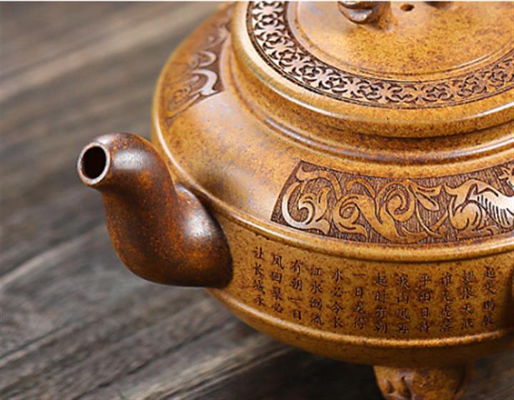 450cc原礦紫泥滿刻大德鐘茶壺POT8290