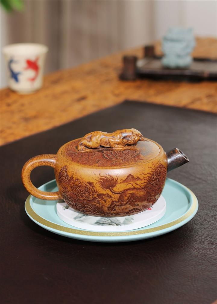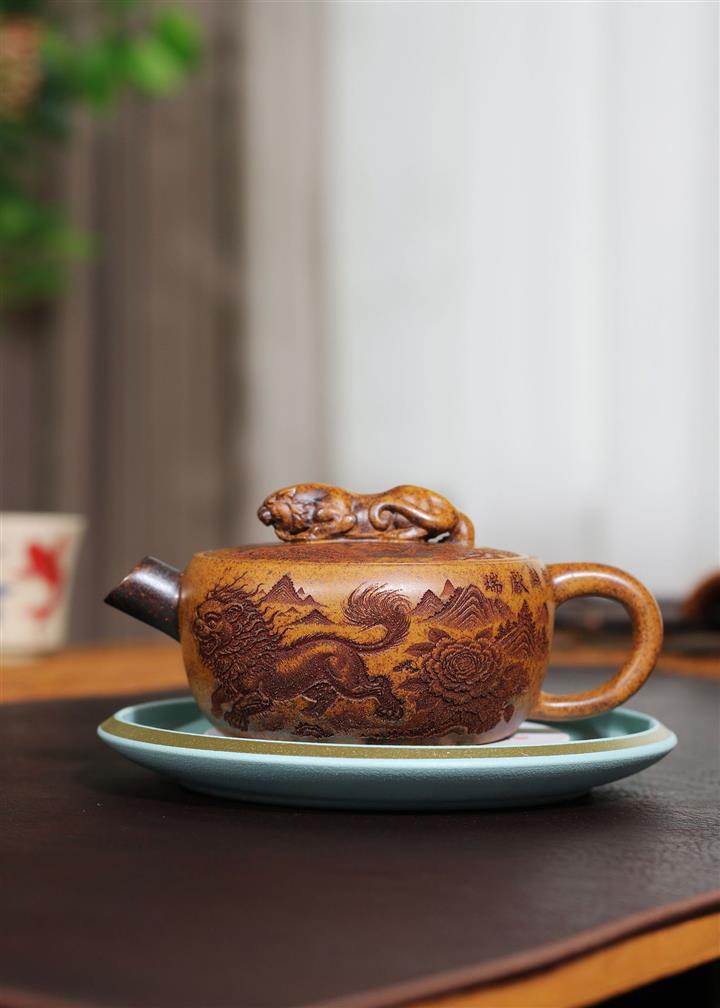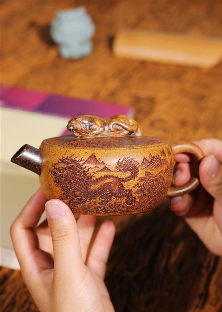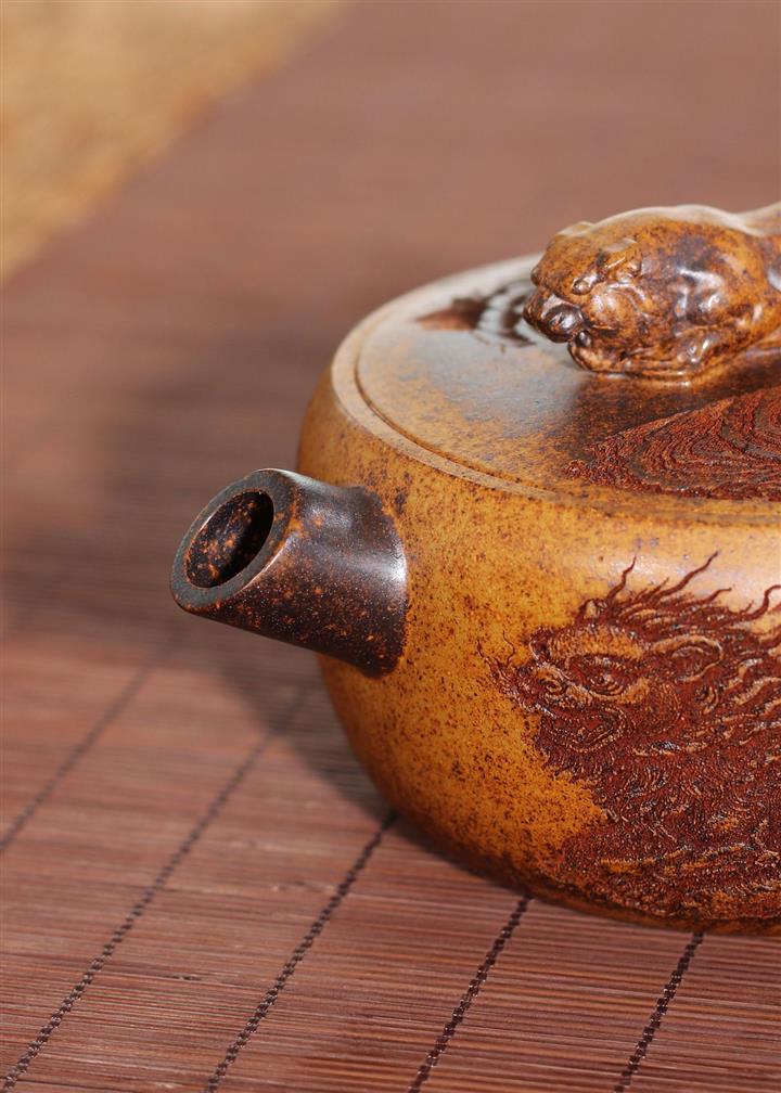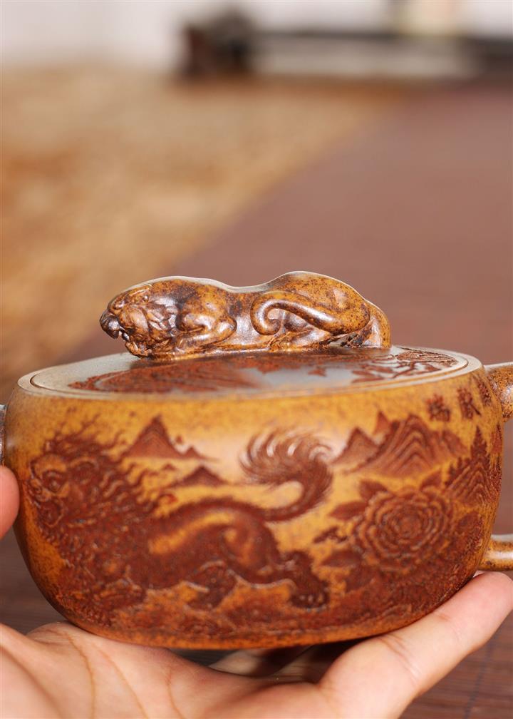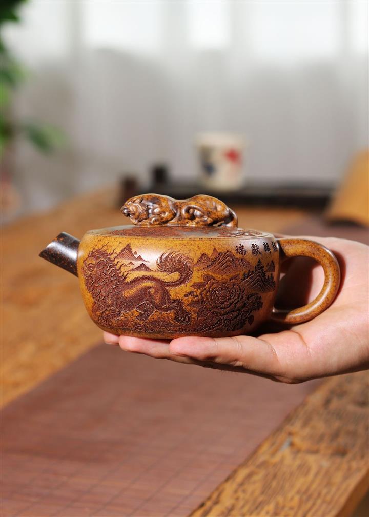 240cc龍骨金砂麒麟獻瑞伏虎漢瓦茶壺POT8276