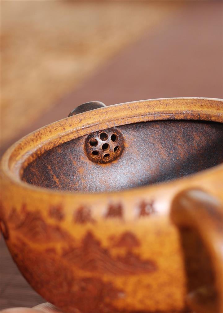 【泥料特點】砂土氣重,似淳實農民,日久使用,漸露鋒芒,養成變化,溫潤莊重。紫砂是壹種雙重氣孔結構的多孔性材質,氣孔微細,密度高。用紫砂壺沏茶,不失原味,且香不渙散,得茶之真香真味。紫砂使用越久,壺身色澤越發光亮照人,氣韻溫雅。紫砂壺長久使用器身會因撫摸擦拭,變得越發溫潤光澤。