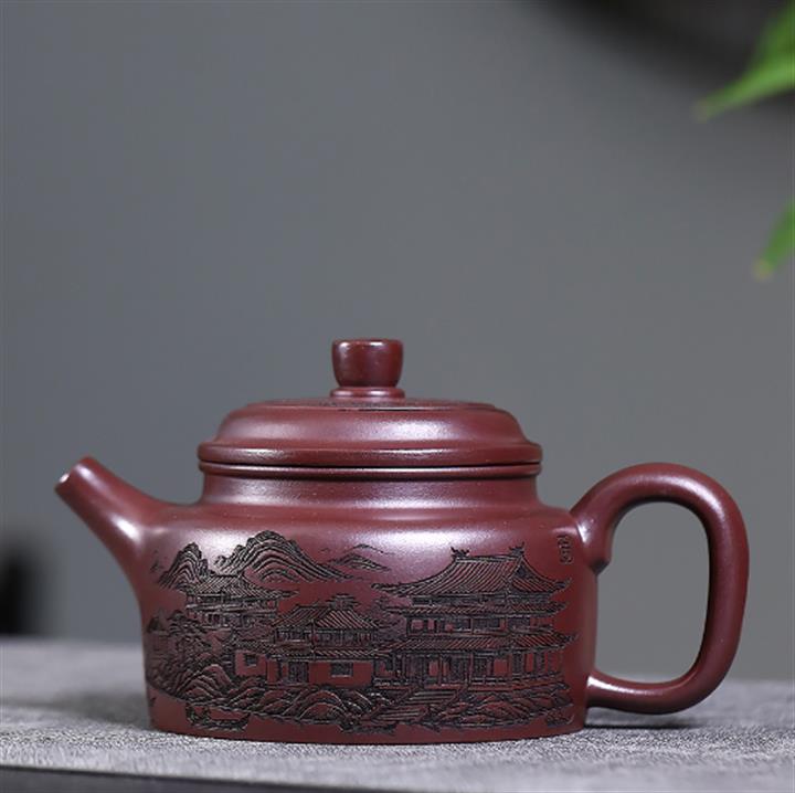 450cc原礦紫泥滿刻大德鐘茶壺POT8290