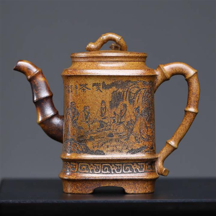 300cc龍骨金砂高溫柴燒四方竹段茶壺POT8292
