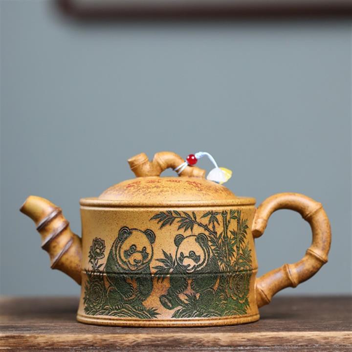 400cc原礦墨綠泥刻繪如意松趣茶壺POT8304