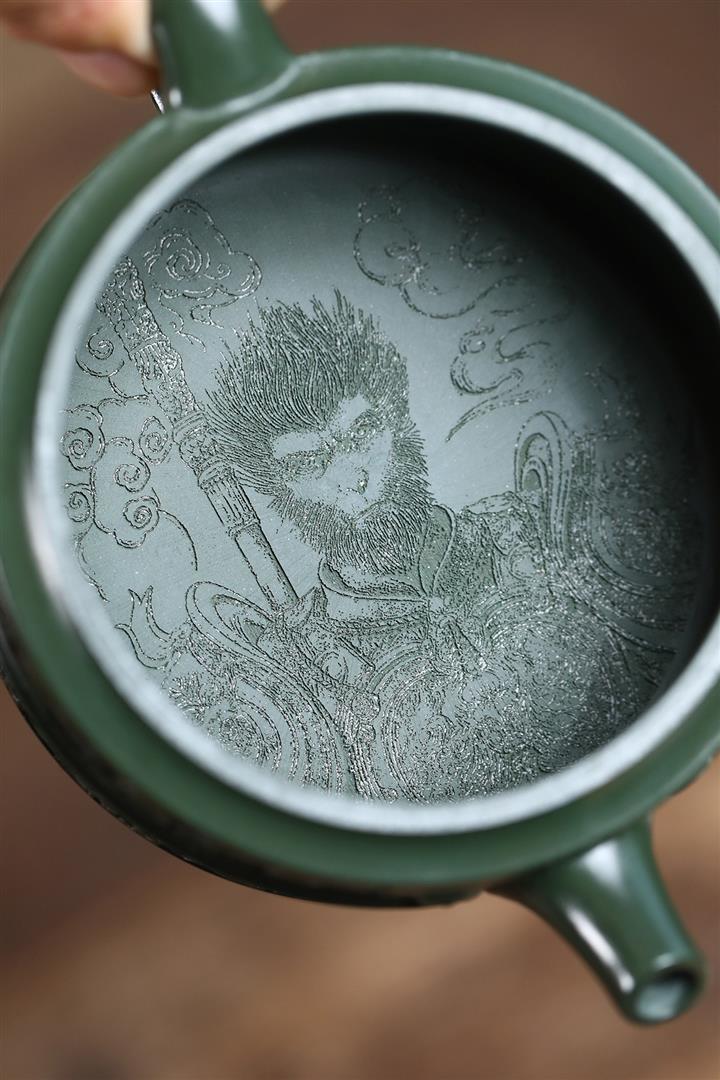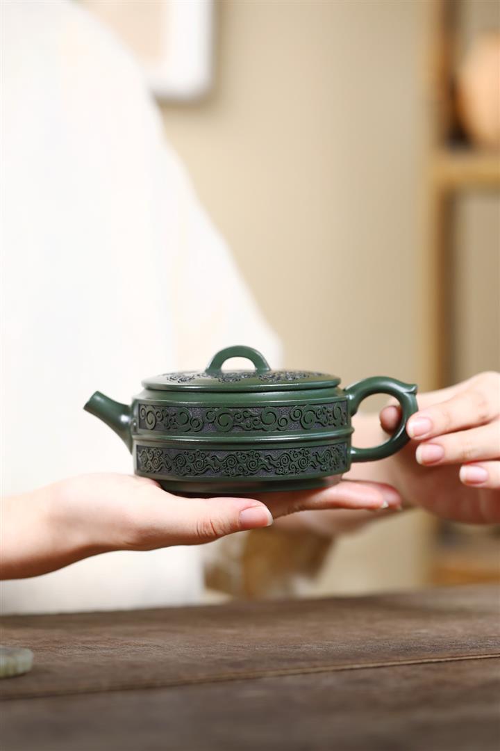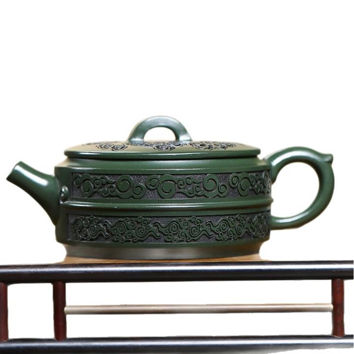 400cc原礦墨綠泥刻繪如意松趣茶壺POT8304