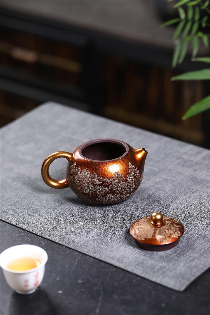 450cc原礦紫泥滿刻大德鐘茶壺POT8290