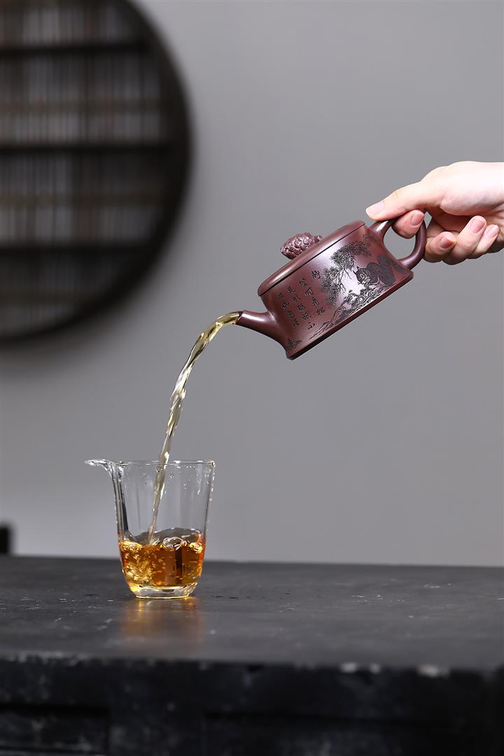 【泥料特點】砂土氣重,似淳實農民,日久使用,漸露鋒芒,養成變化,溫潤莊重。紫砂是壹種雙重氣孔結構的多孔性材質,氣孔微細,密度高。用紫砂壺沏茶,不失原味,且香不渙散,得茶之真香真味。紫砂使用越久,壺身色澤越發光亮照人,氣韻溫雅。紫砂壺長久使用器身會因撫摸擦拭,變得越發溫潤光澤。