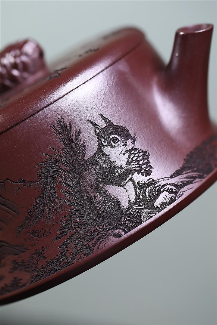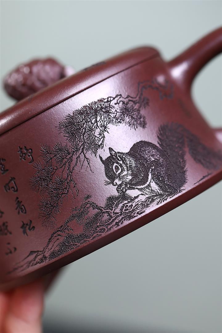 300cc原礦老紫泥碩果累累松鼠漢瓦茶壺POT8287