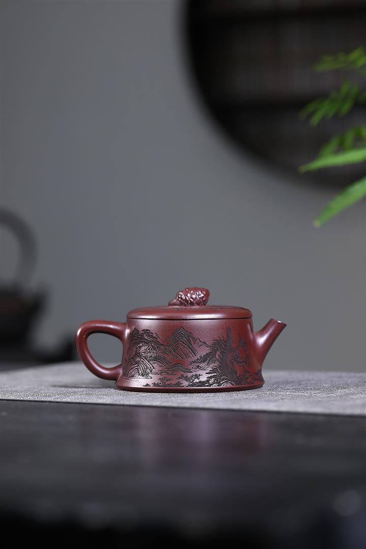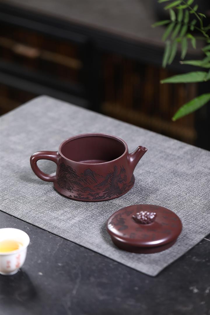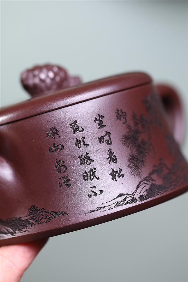 450cc原礦紫泥滿刻大德鐘茶壺POT8290