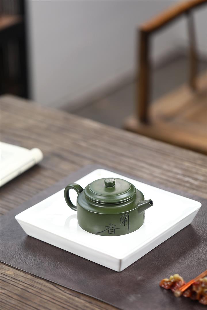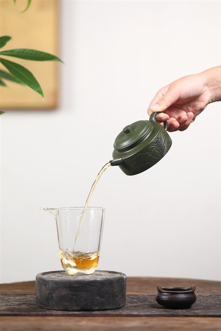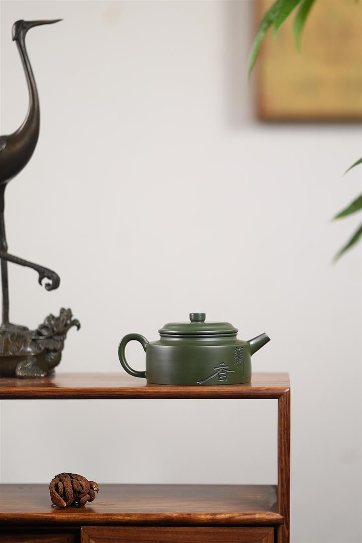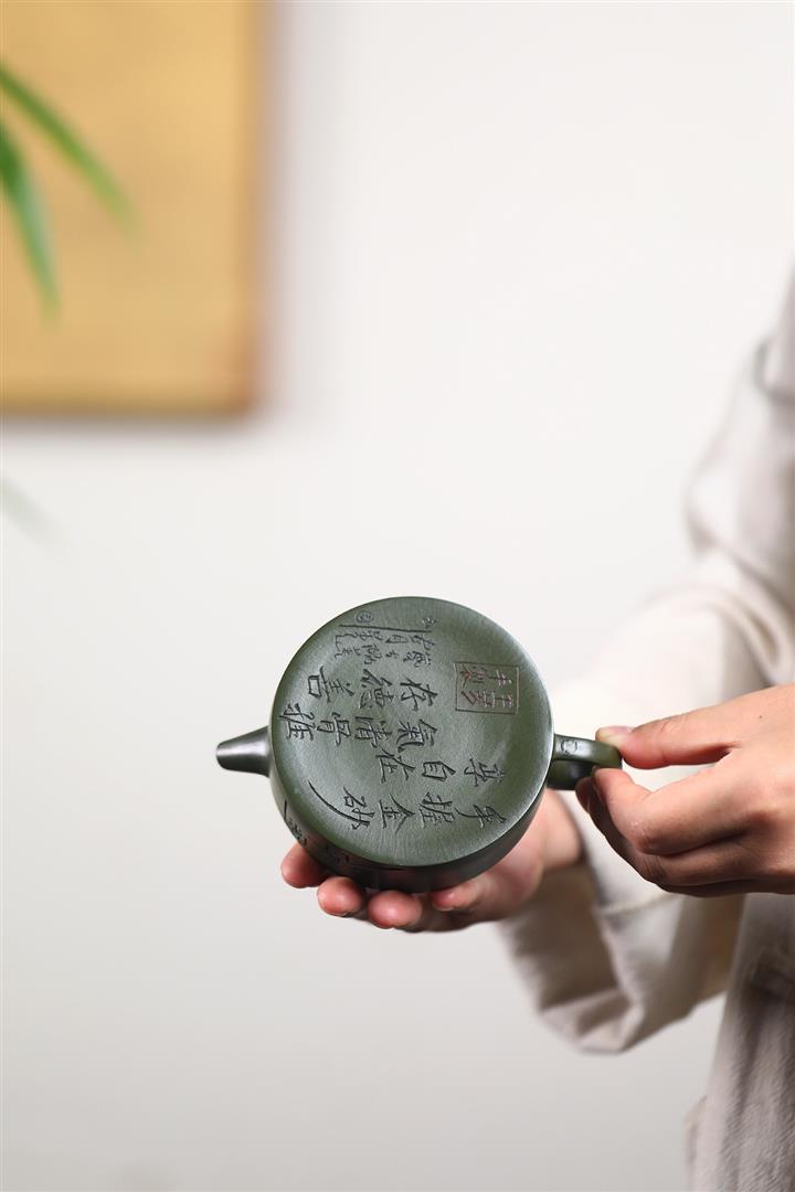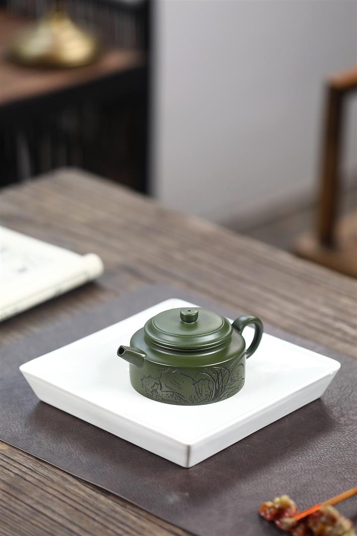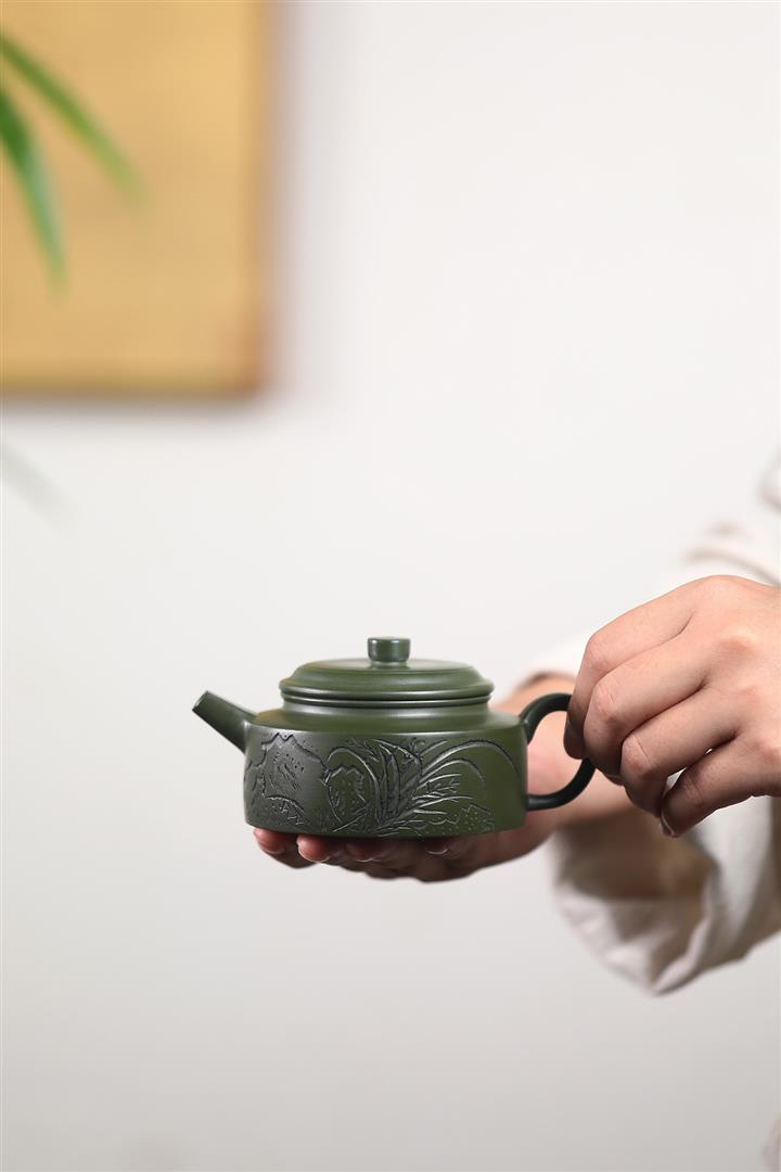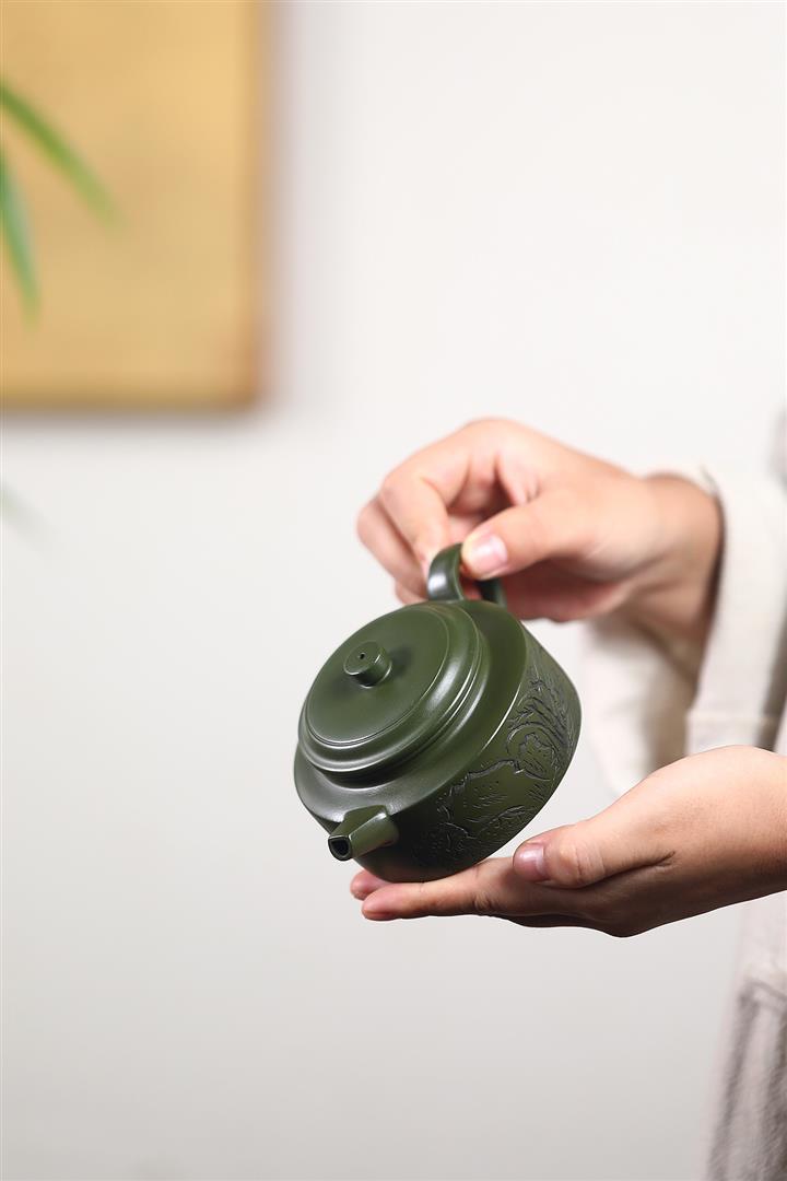 330cc原礦墨綠泥滿刻如意清荷茶壺POT8301