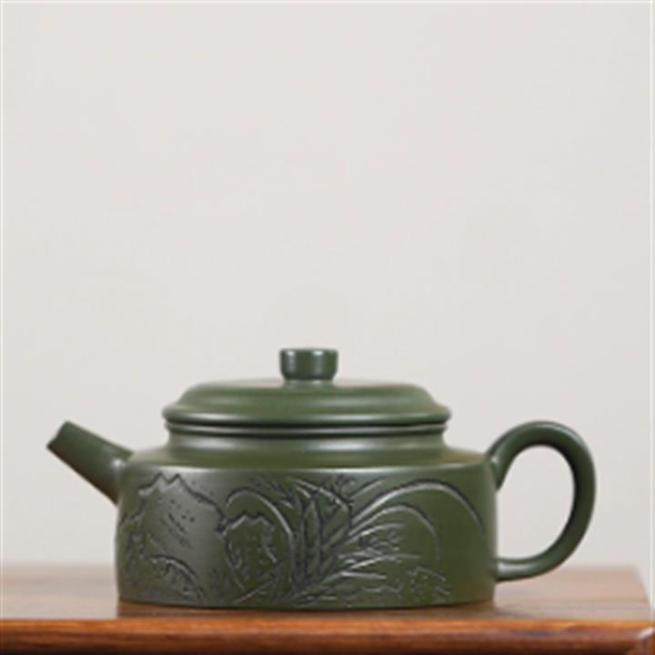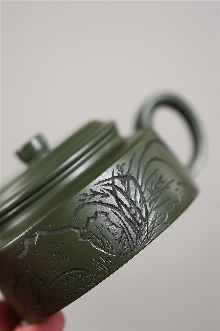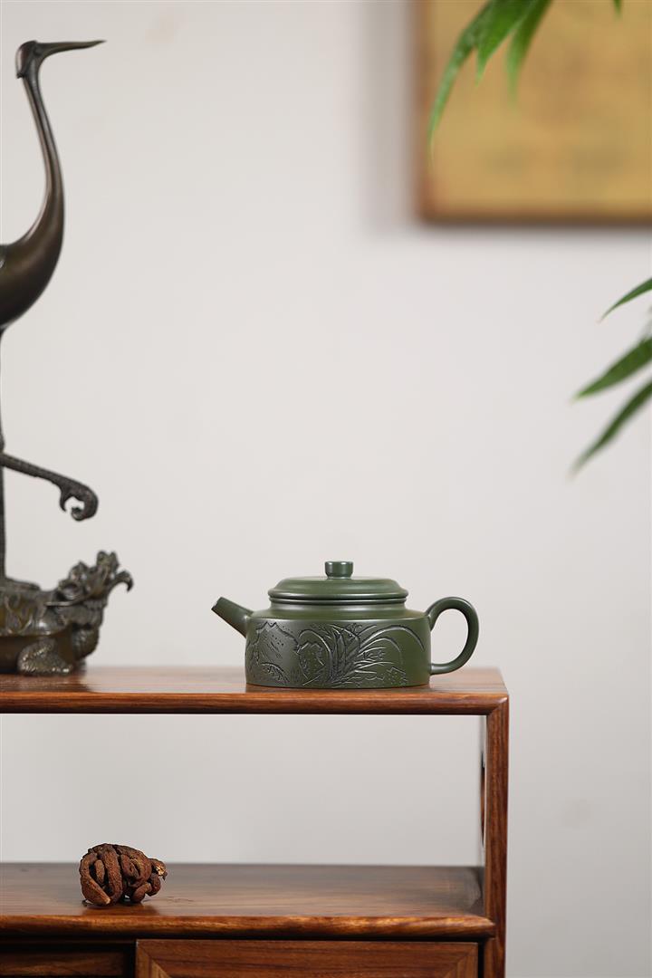 350cc原礦墨綠泥通身刻竹之清雅茶壺POT8302