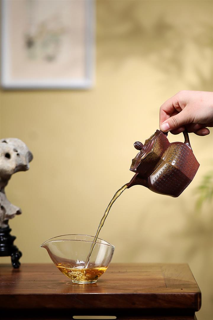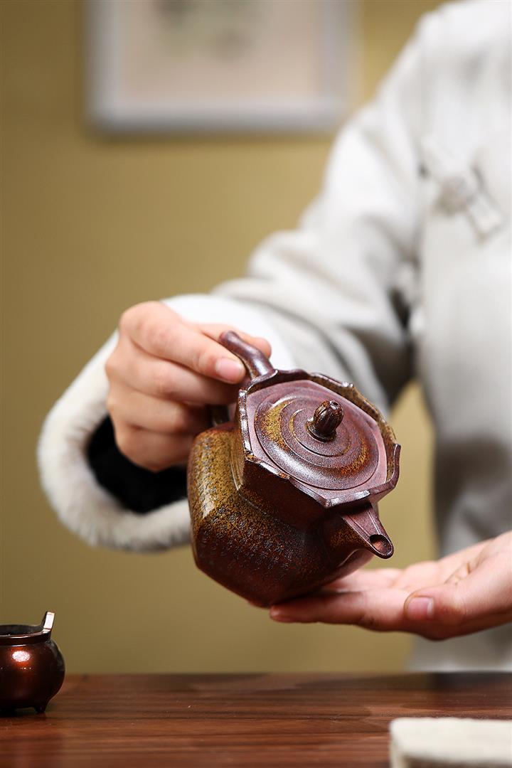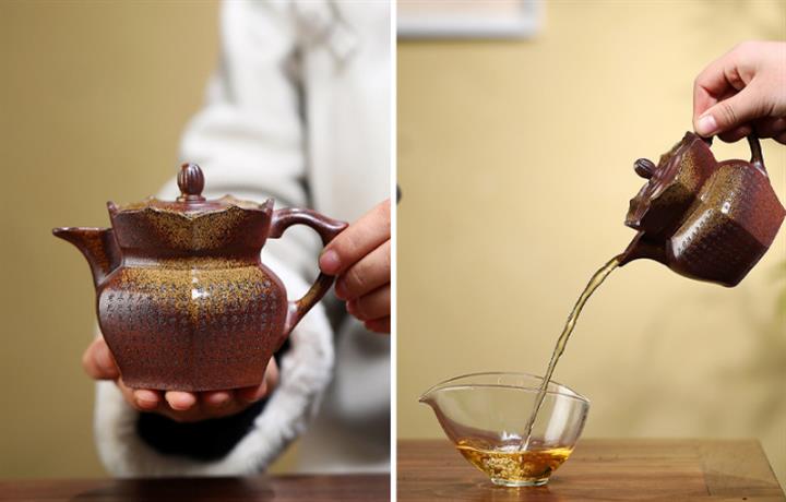 【泥料特點】砂土氣重,似淳實農民,日久使用,漸露鋒芒,養成變化,溫潤莊重。紫砂是壹種雙重氣孔結構的多孔性材質,氣孔微細,密度高。用紫砂壺沏茶,不失原味,且香不渙散,得茶之真香真味。紫砂使用越久,壺身色澤越發光亮照人,氣韻溫雅。紫砂壺長久使用器身會因撫摸擦拭,變得越發溫潤光澤。