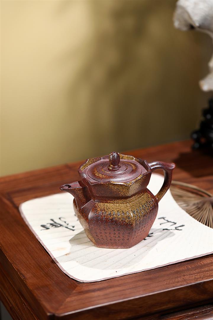 290cc段泥古法柴燒六方僧帽茶壺POT8294