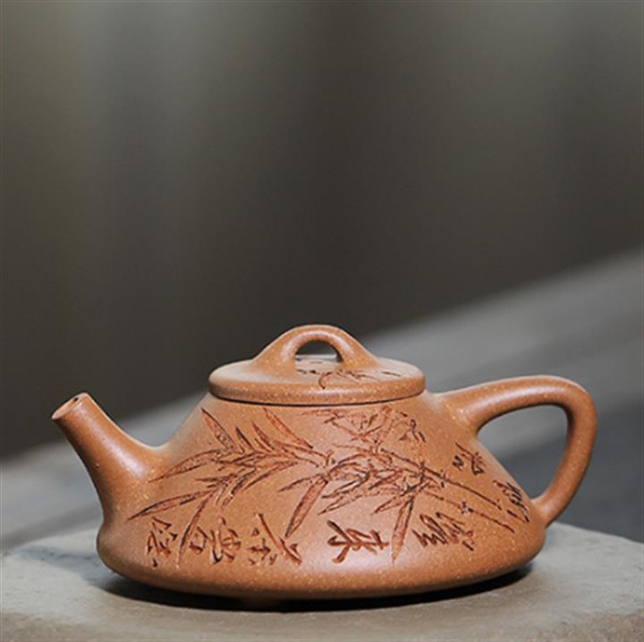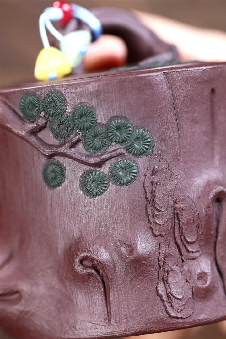 350cc原礦墨綠泥通身刻竹之清雅茶壺POT8302