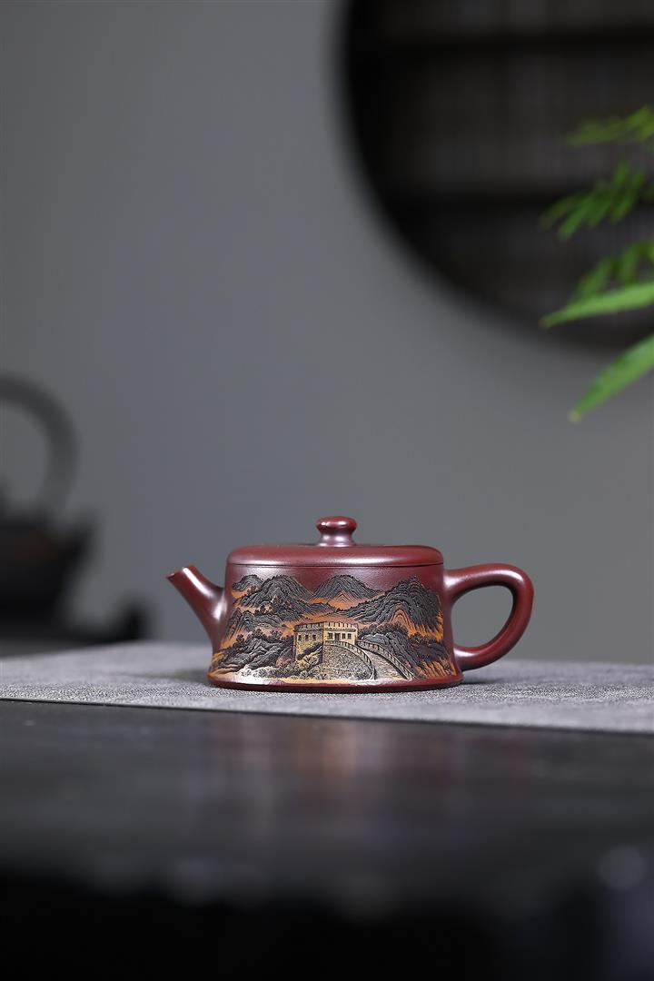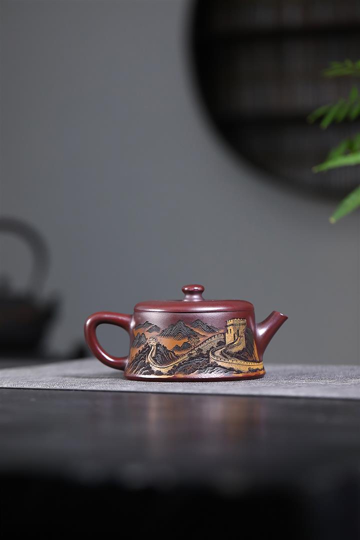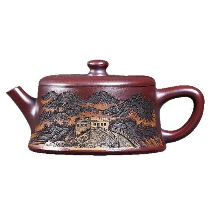 190cc原礦紫泥滿刻萬裏長城茶壺POT8310