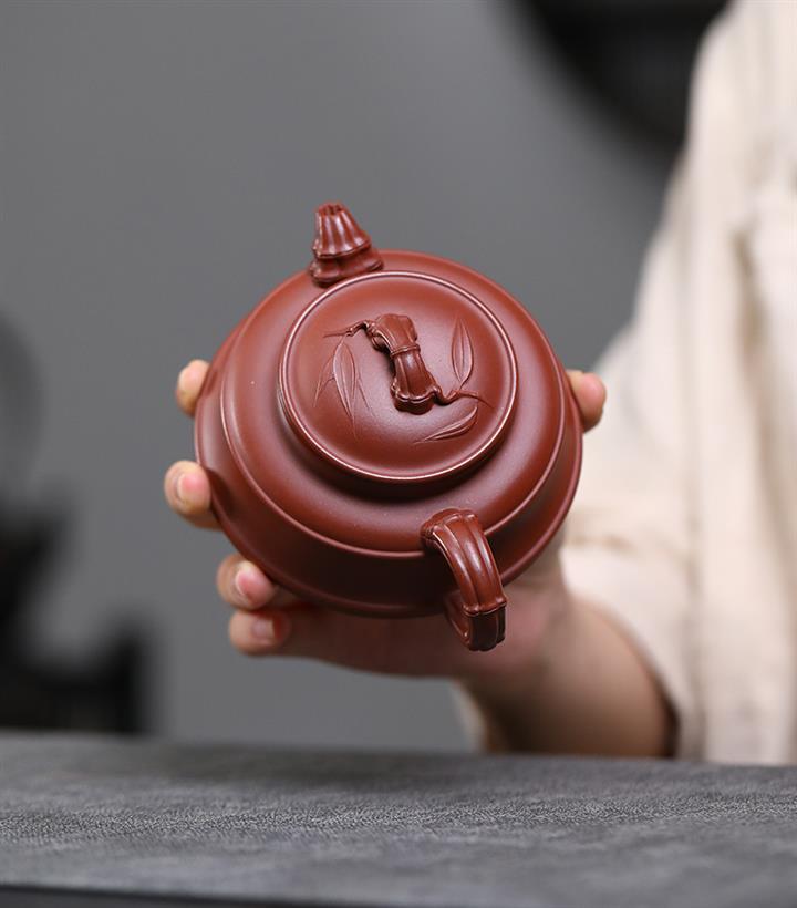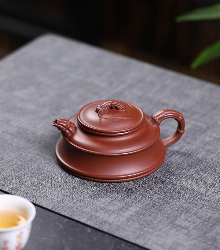 160cc原礦紅皮龍紫砂雙線竹鼓茶壺POT8318