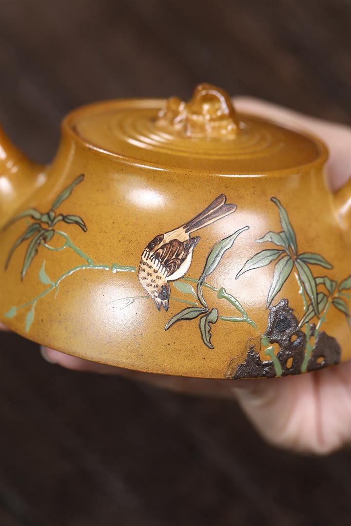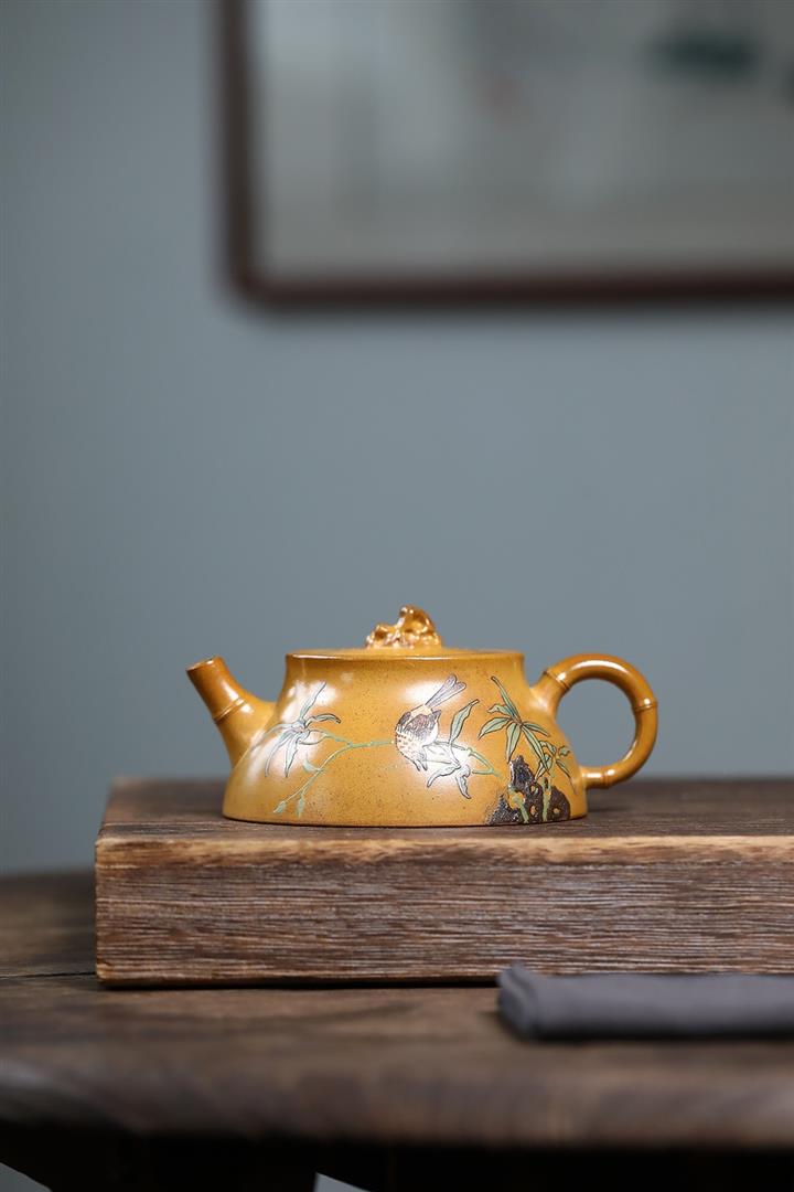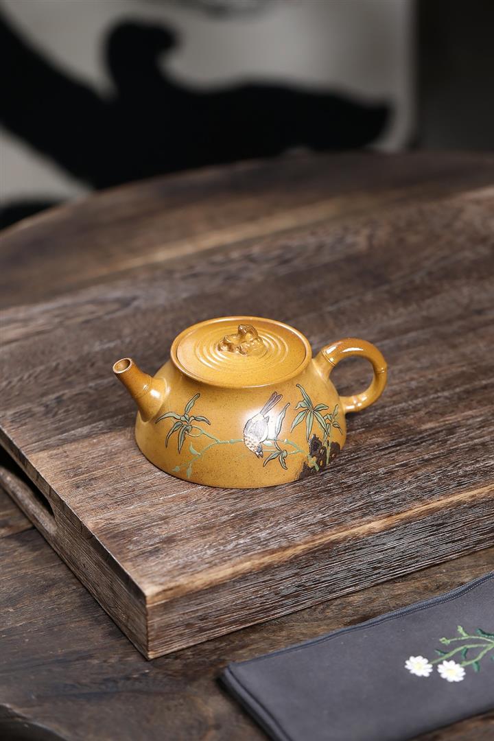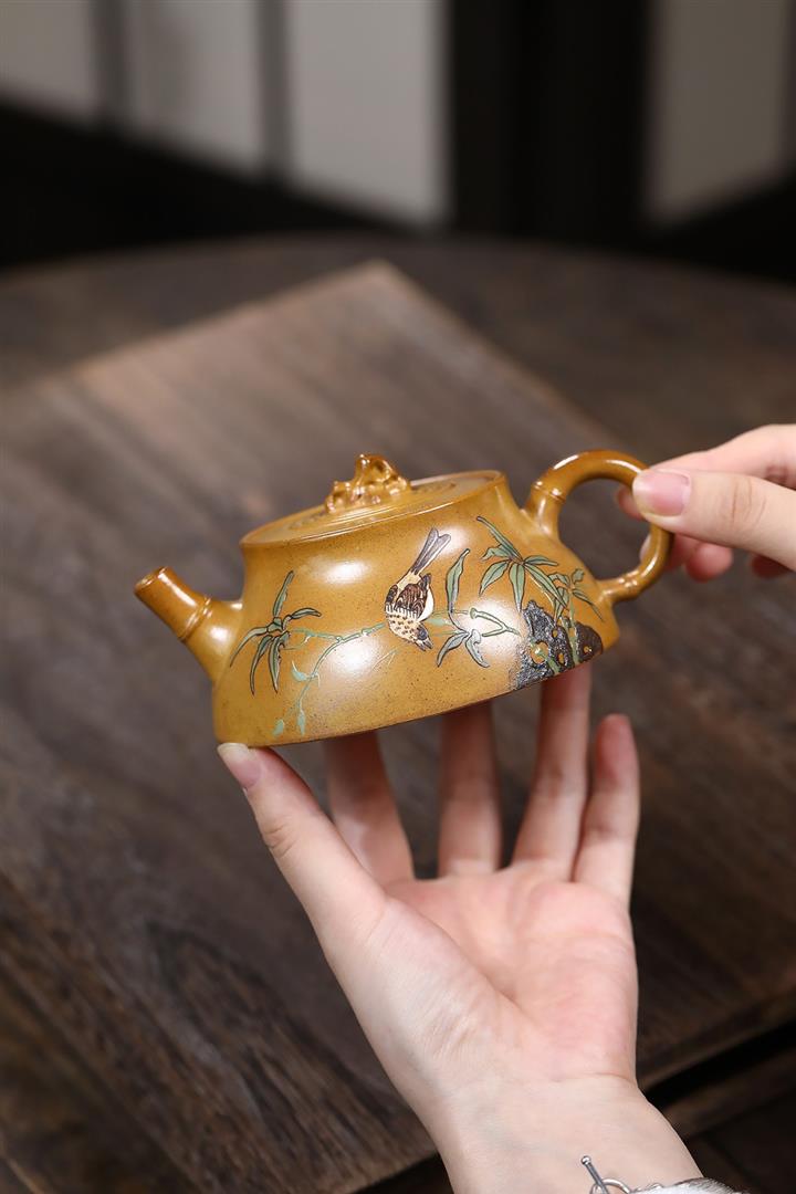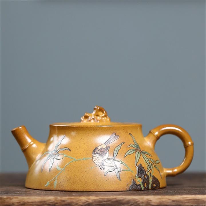 250cc龍骨金砂四方竹石孔雀東南飛茶壺POT8331