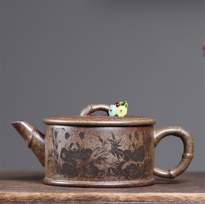 330cc原礦沈香泥柴燒竹影熊韻漢瓦壺POT8421