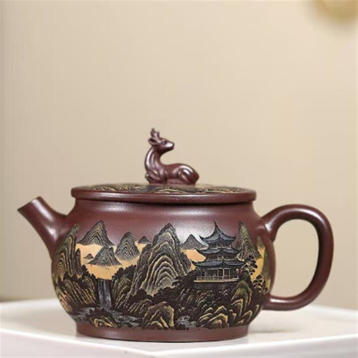 340cc原礦紫泥刻繪山水仿古泡茶壺POT8416